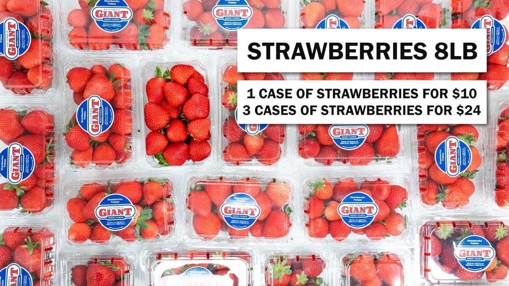 8/1lb strawberries for $10 or get 3 whole cases for $21!